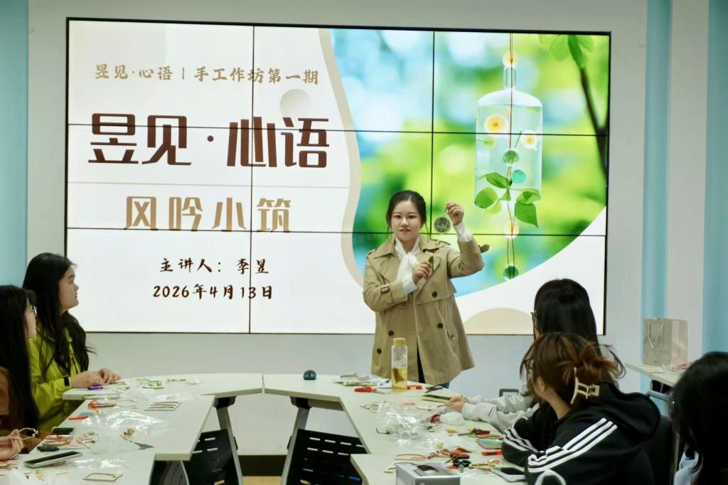 为关注大员工心理健康,引导青年在快节奏学习生活中找到舒缓情绪的出口,4月13日,昱见·心语|手工作坊第一期——“风吟小筑”制作宋锦风铃活动圆满收官。二十余名大员工齐聚一堂,在手工创作中倾听内心声响,触摸自然温度,为心理健康注入温柔能量。
